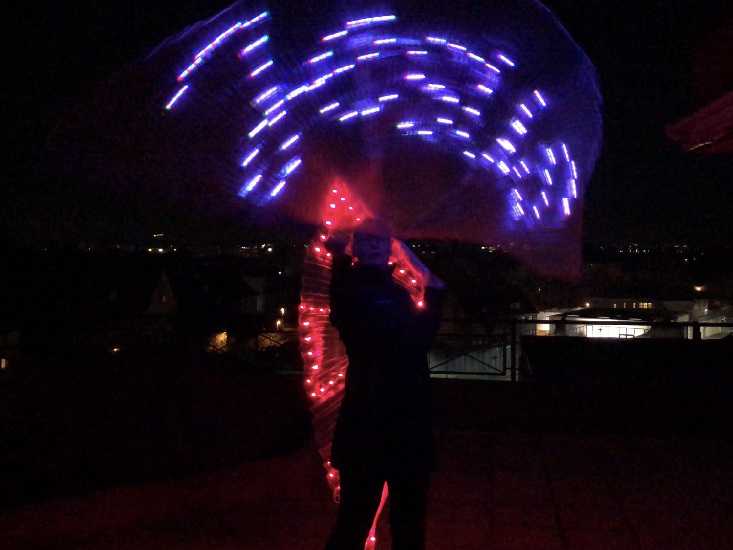 Im Mai 2021 habe ich dann einen interessanten Post mit „LED-Tanzflügeln“ auf Instagram gefunden. Daraufhin habe ich StrongTower.Dance.Revival angeschrieben und gefragt, um was für Material es sich hier handelt und wo man so etwas kaufen kann.