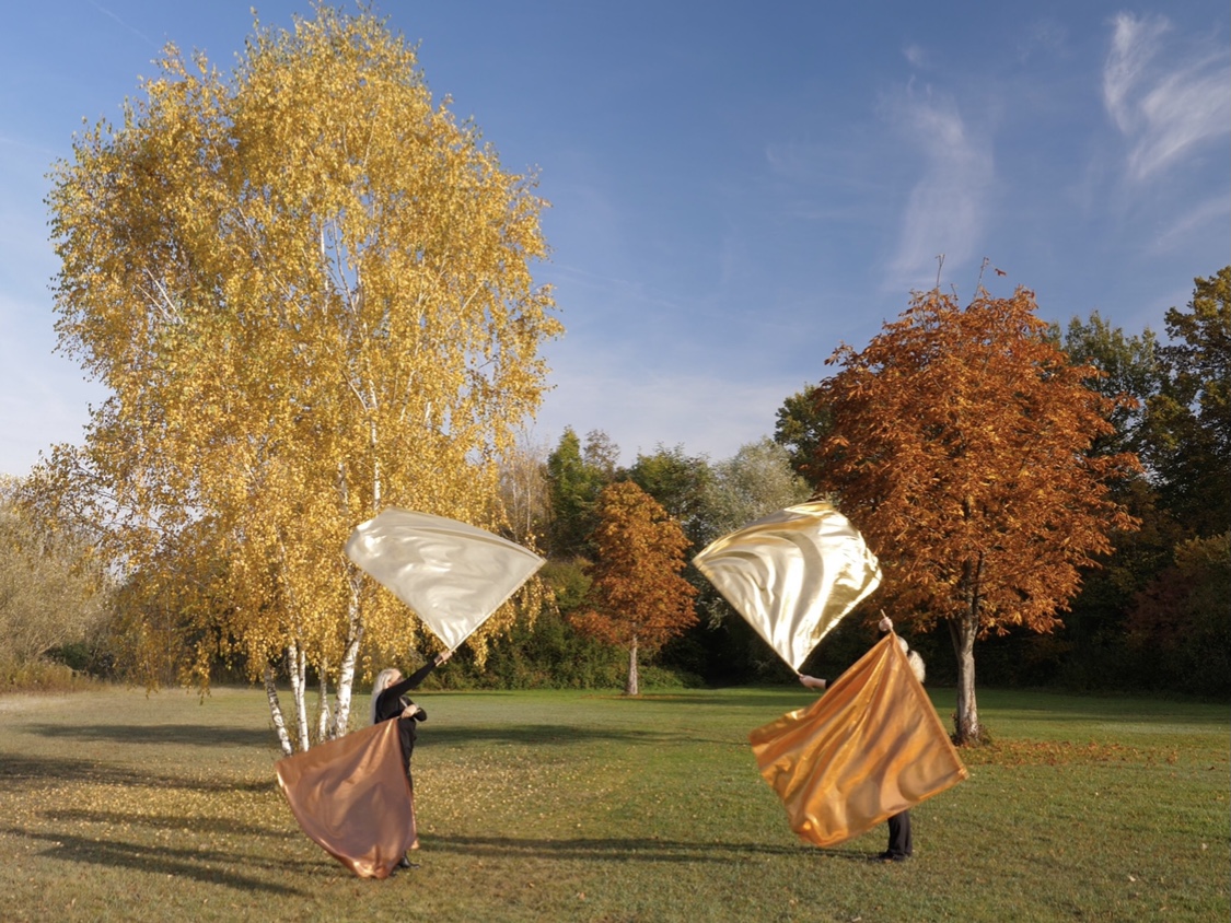 Des Weiteren haben wir Aufnahmen im Brühler Schlosspark, im Schwetzinger Schlosspark, am Wasserfall, an der Wartburg, im Gebetszentrum und diversen anderen Orten oder bei Nebel im Sonnenaufgang, bei der Zierkirschenblüte oder mit Herbstlaub angefertigt. Außerdem habe ich Aufnahmen in meiner „Kreativwerkstatt“ gemacht, um Andere am Flaggen-Entstehungsprozeß teilhaben zu lassen. So sind im vergangen Jahr eine ganze Menge Filmmaterial entstanden. Unsere filmerischen Fähigkeiten konnten wir dabei natürlich auch erweitern.