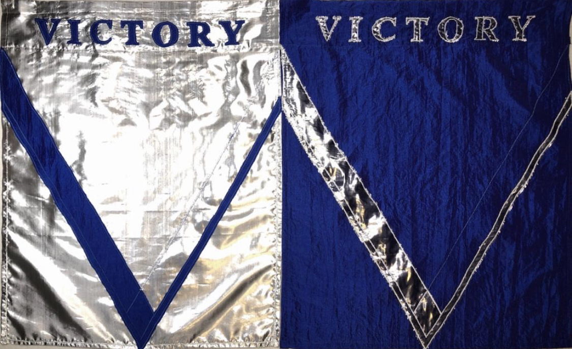 Bei meiner Victory-Flagge habe ich die Buchstaben-Applikation in den Tunnel-Bereich platziert, somit war es mir möglich, daß die Schrift von beiden Seiten problemlos lesbar ist. Bei meiner großen Jesus-Flagge habe ich die Buchstaben quer über die Flagge appliziert. Die Flagge ist somit nur von einer Seite richtig lesbar, die Rückseite ist quasi in Spiegelschrift.